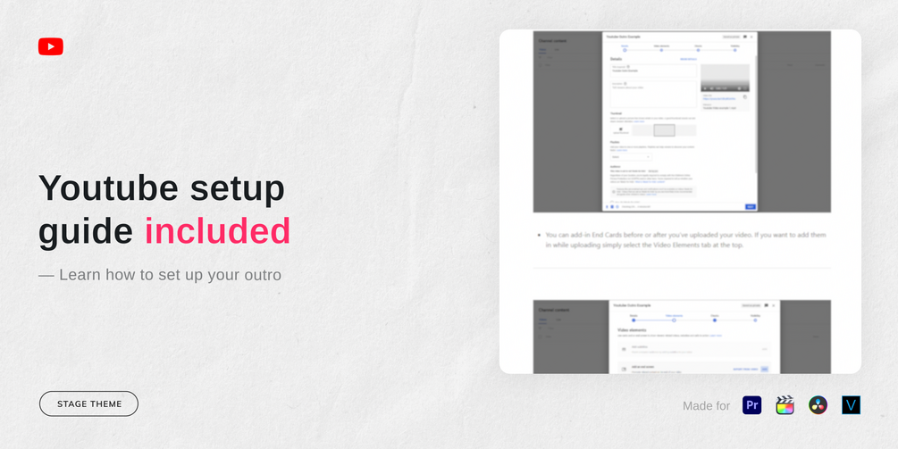 ⨠Set the stage. This pack includes 2 free and unique end screen templates. A theatrical design for any content type, from gaming to video essays and vlogs. Built for YouTube creators, crafted by Milkpack.